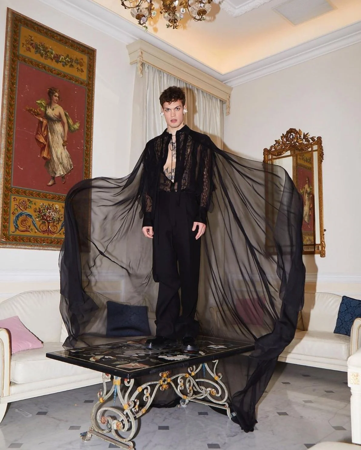 he International Song Contest Eurovision took place in Italy this year. Blanco and Mamood represented Italy. Blanco used a custom of Valentino and some other outfits of brands like Heliot Emil, Marine Serre, Maison Margiela, The Attico, etc.